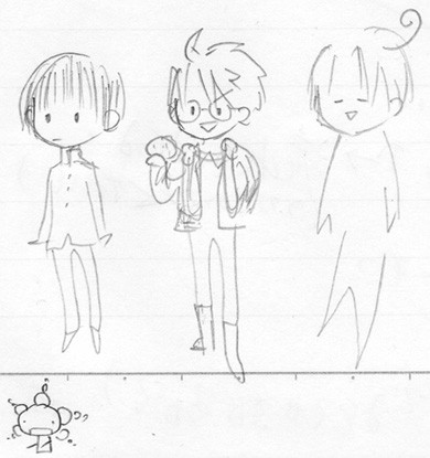 こ れ は ひ ど い 。たぶん資格講習に通っていた時、ノートの片隅に落描きしてたものと思われます。ヘタリアの(左から)日・米・伊だと思うんですけど特に伊ひどいな!(笑)あと何故かオリゼーがいます。ま、まじめに描いたのもあったんだからねっ!でも軍服うろ覚えで描いたら全然違ったっていう。